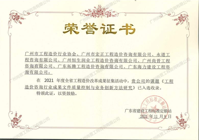 廣州尚晉工程咨詢有限公司(以下簡稱“尚晉咨詢“) 。具有建設部頒發的甲級工程造價咨詢資質、國家發展改革要頒發的工程項目管理資格證及廣東省工程建設招標代理資信A,是廣東省首批搭建大數據咨詢平臺進行全過程咨詢管控模式的公司之一,擔任廣東省工程造價協會理事單位、廣州市造價協會理事單位、廣東省建筑業協會理事單位等要職。     廣州尚晉工程...